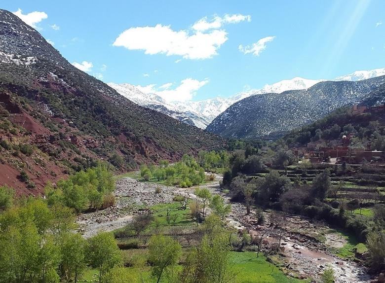 Only 67 km from Marrakesh and an hour’s drive from the Ourika Valley, you will discover one of the most beautiful places in Morocco, offering breathtaking views of the valley covered with steam. OURIKA is the third and the last valley of the Three Valleys. Around 9:00 am you will be taken to the valley via the street of Mohammed 5 you will stop at the regular interval so that you can feel the sounds and images while climbing in the green hills, breathe the pure air of the mountains, Share a delicious meal by the river and let yourself see for yourself what everyday life means, the people of here and in the mountainous passages of the Atlas as they approach Seti Fatma and the waterfalls. When this relaxing adventure ends, our driver will take you back to your accommodation.