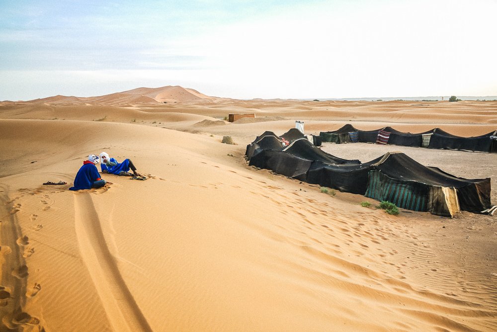 After breakfast we take the road to Marzouga . We will cross the landscapes of this beautiful region with photo stops , further on will pass by the stone desert called (the Hammadda ) arrived in Erfoud and the holy city of rissani . Camel ride for about 1 hour through the dunes until the arrival at our bivouac, this is the time we allow to film (the spectacular sunset on the dunes. At the bivouac, enjoy a delicious dinner under the desert sky, a nightlife animated by a traditional Moroccan atmosphere.